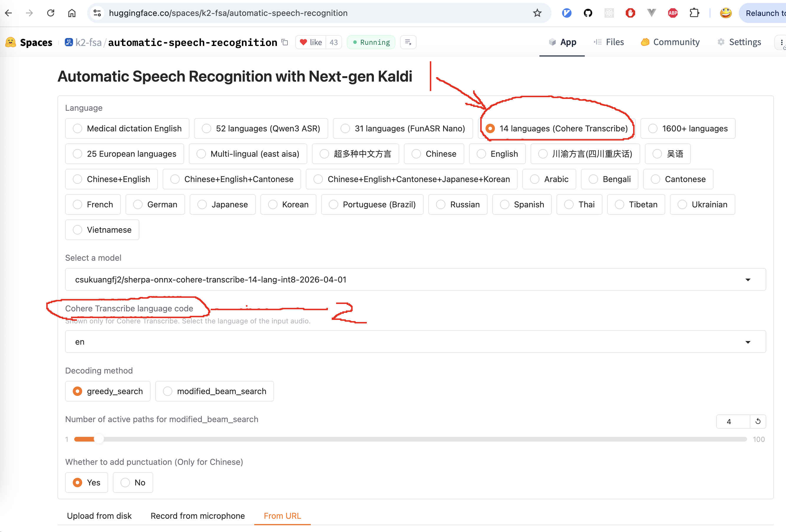 Fig. 134 Try Cohere Transcribe in our Huggingface space with sherpa-onnx