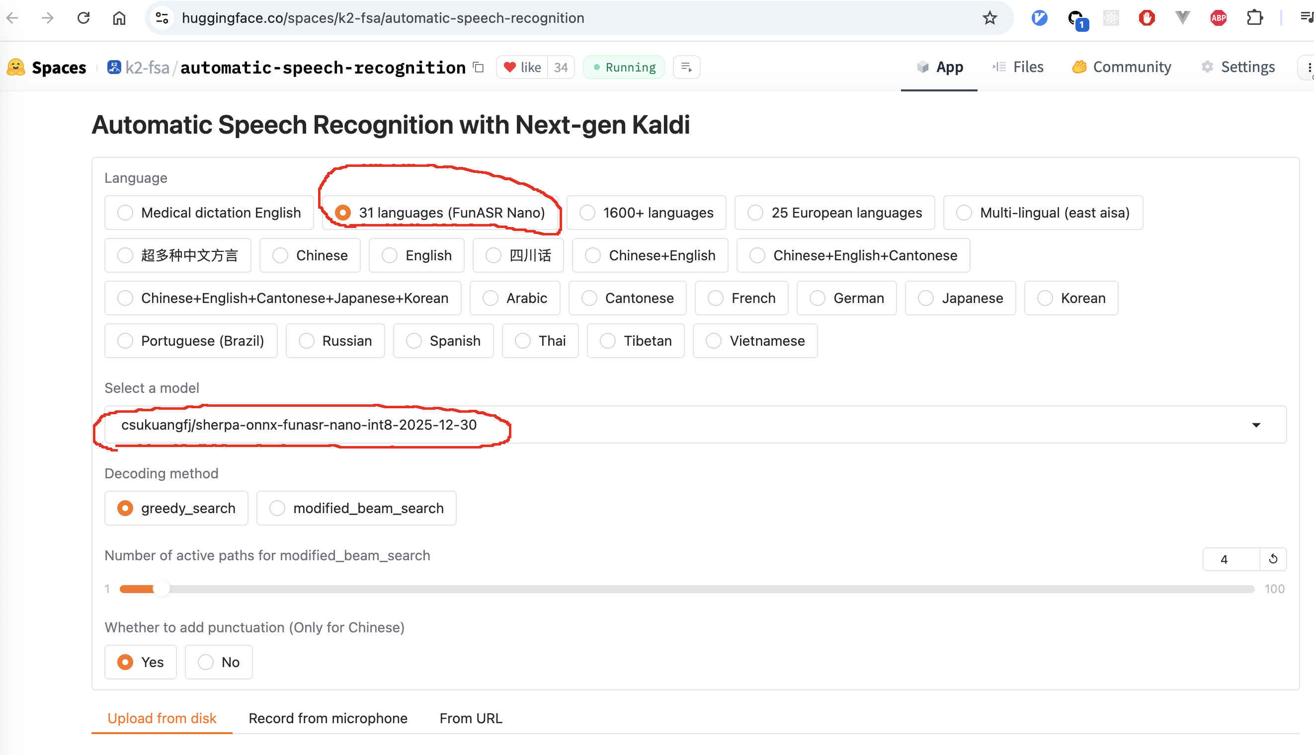 Fig. 134 Try Fun-ASR-Nano-2512 in our Huggingface space with sherpa-onnx