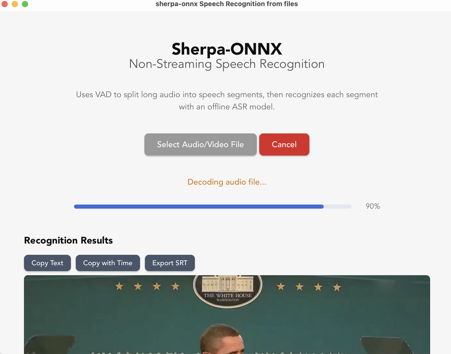 Non-Streaming Speech Recognition from File